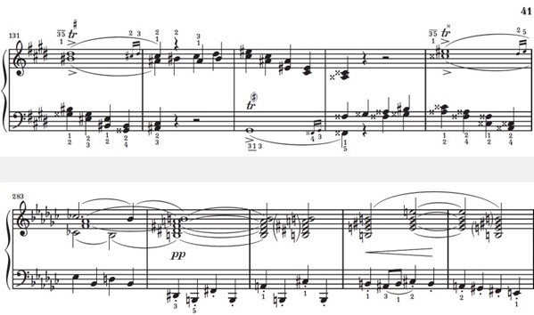 和《伊索的盛宴》一样,本版乐谱的指法也由卓越的钢琴家、阿尔康专家文森佐·马尔滕波(Vincenzo Maltempo)编订。在草稿阶段跟着这套指法从头至尾试奏一遍,对我来说是一次难忘的体验。我向马尔滕波提出的问题之一是,他是否真的想在一个棘手的段落用小指和食指来演奏一个相当大的音程。回答是:“当然啦。”他似乎为此准备了一套精密的乐理推论,但最核心的想法是,这毕竟是一首练习曲,“也就是说,它或许也是一个提高连奏技巧和手指伸展能力的机会”。对我这种钢琴领域的凡夫俗子而言,这话听起来很好玩,如同是在说,攀登八千米的山峰或许也是一个顺便稍微练习一下在悬崖上抓牢的绝佳机会。不过,马尔腾波对钢琴技法的思考当然是正确的,因为每个弹奏阿尔康作品的人都行走在钢琴艺术的最高峰。