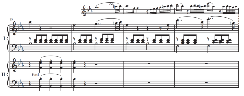 为此,彼得·安德谢夫斯基同我们分享了他经过实践检验的、巧妙地符合人体工学的钢琴指法。华彩段落则不用烦劳他,因为如前文所述,莫扎特本人已写好了两个华彩段落和一段即兴引导句,它们自然也是亨乐原作版乐谱中的一部分。只有第三乐章的一处即兴引导句没有作曲家的亲笔文献存世,因此彼得·安德谢夫斯基为这个短小的即兴过渡环节提供了自己的建议。
