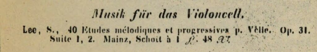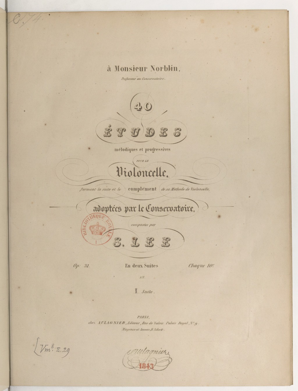 乍看起来,一切都很简单:和《大提琴实用教程》op. 30一样,李的第31号作品的首印版乐谱也由巴黎的奥拉尼耶(Aulagnier)出版社出版,它在《法兰西书目》(Bibliographie de la France)中认证的具体出版时间是1843年7月15日,法国国家图书馆在入藏该谱时加盖的戳记也印证了此日期。