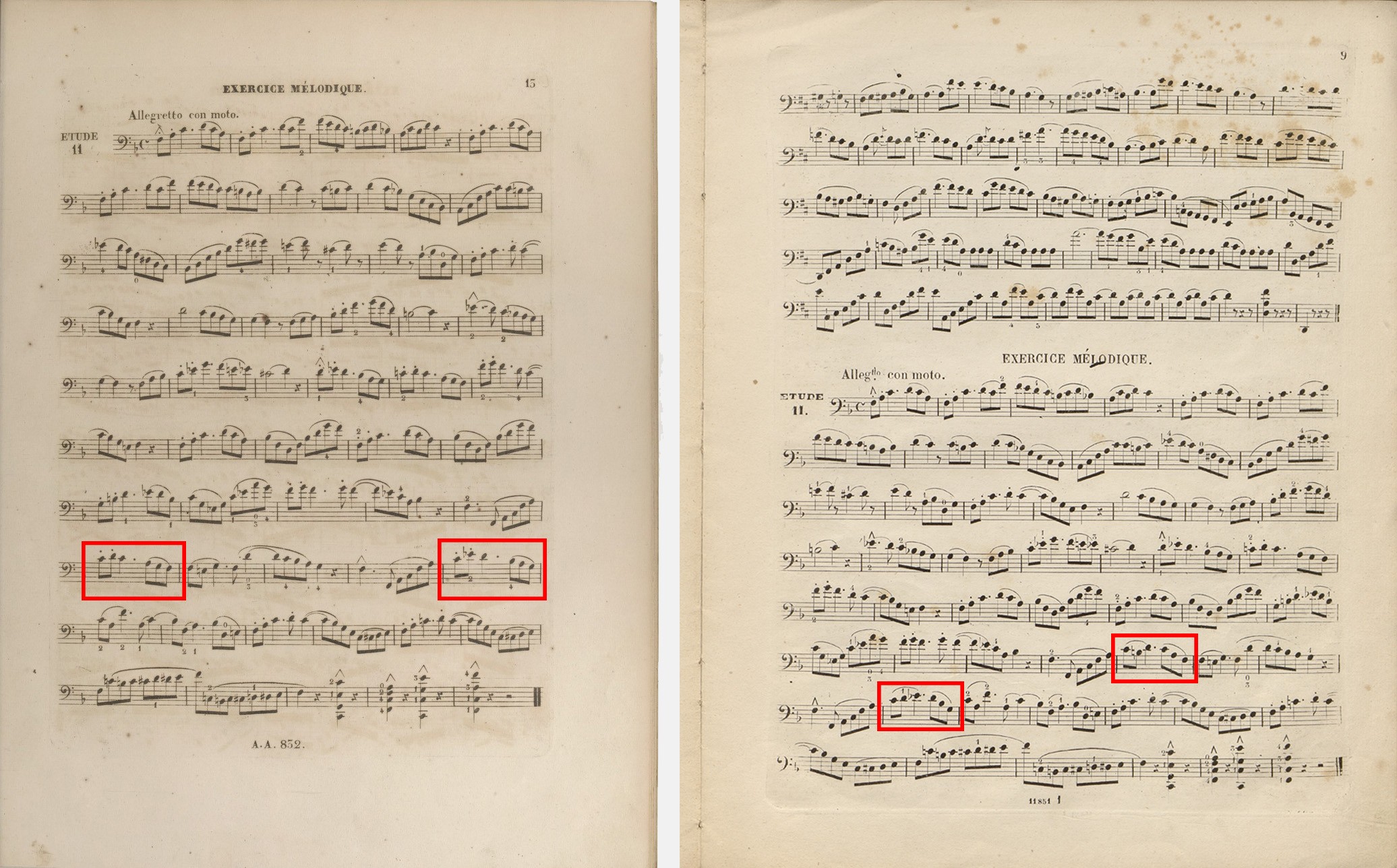 这样看来,第10练习曲之所以被删去两个长度分别为12小节和8小节的段落,可能是因为出版方想要将德语版乐谱中的第9—11练习曲印在两页纸上,而非原版中的三页纸。相反,第11练习曲中有两个小节的音型发生了改动——具体操作方式是在排印底本上擦除了原有内容,并在旁边用音名字母做了说明——则是纯粹旋律性的。