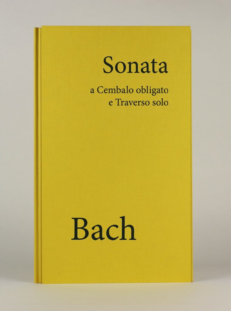 最后还有一个疑问:到底为何选择了黄色封皮?这是一个非常主观的问题,但当我问自己,什么颜色适合这部独一无二的长笛奏鸣曲时,心目中浮现的是某种明亮、灿烂的颜色。于是,在翻检了无数纸张样品后,我和同事们一致同意“巴赫用黄色”。不过,如果仔细观察的话,还是能在烫印的标题中找到一点敝社代表性的蓝色……