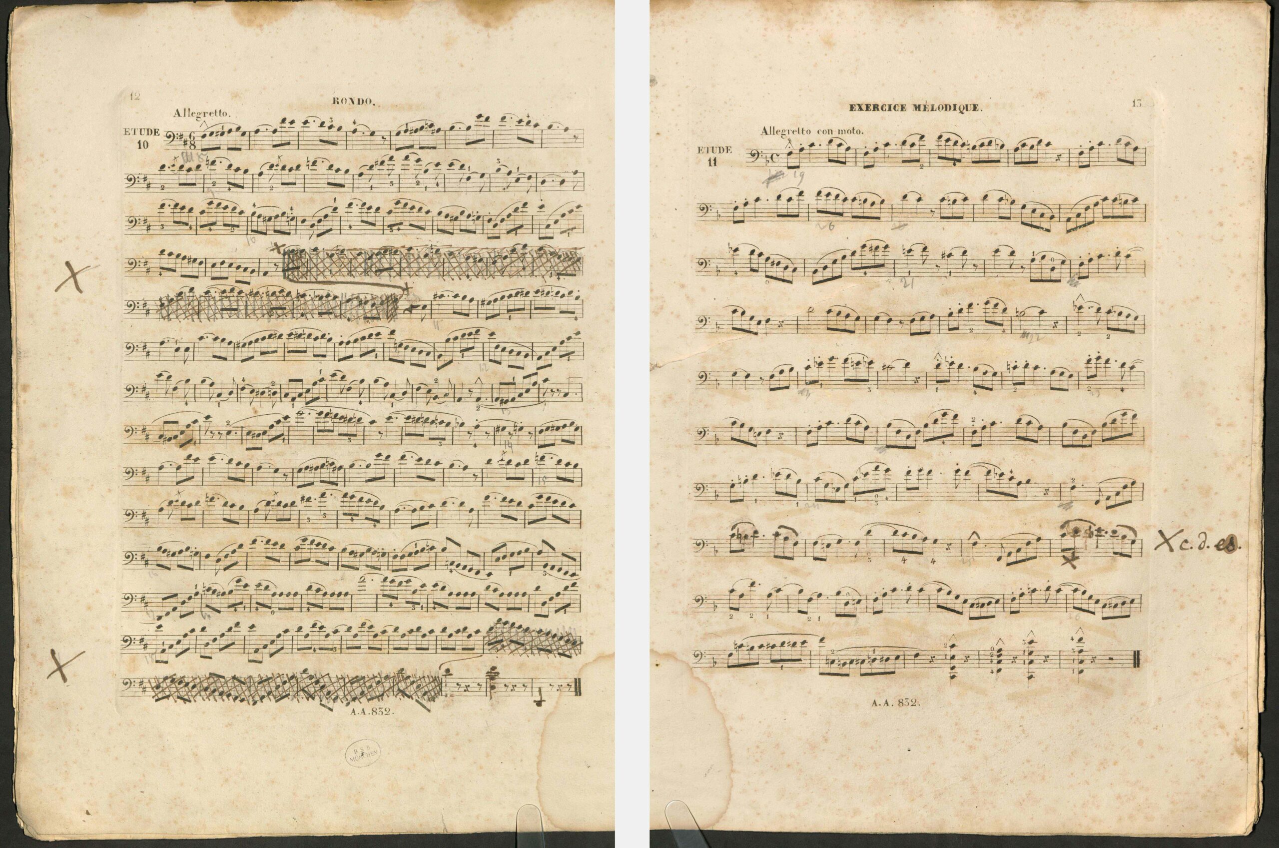Noch war das Schottarchiv digital zwar nicht öffentlich zugänglich, aber auf meine Anfrage zu den Etüden op. 31 erhielt ich die Auskunft, dass man im Druckbuch des Verlags die Schott-Ausgabe samt neuer Plattennummer identifizieren könne, ein Exemplar aber nicht vorliege. Allerdings sei eine Aulagnier-Ausgabe vorhanden, die offenbar als Stichvorlage für die Schott-Ausgabe gedient habe und zahlreiche handschriftliche Eintragungen enthielt. Dies war natürlich umso spannender!