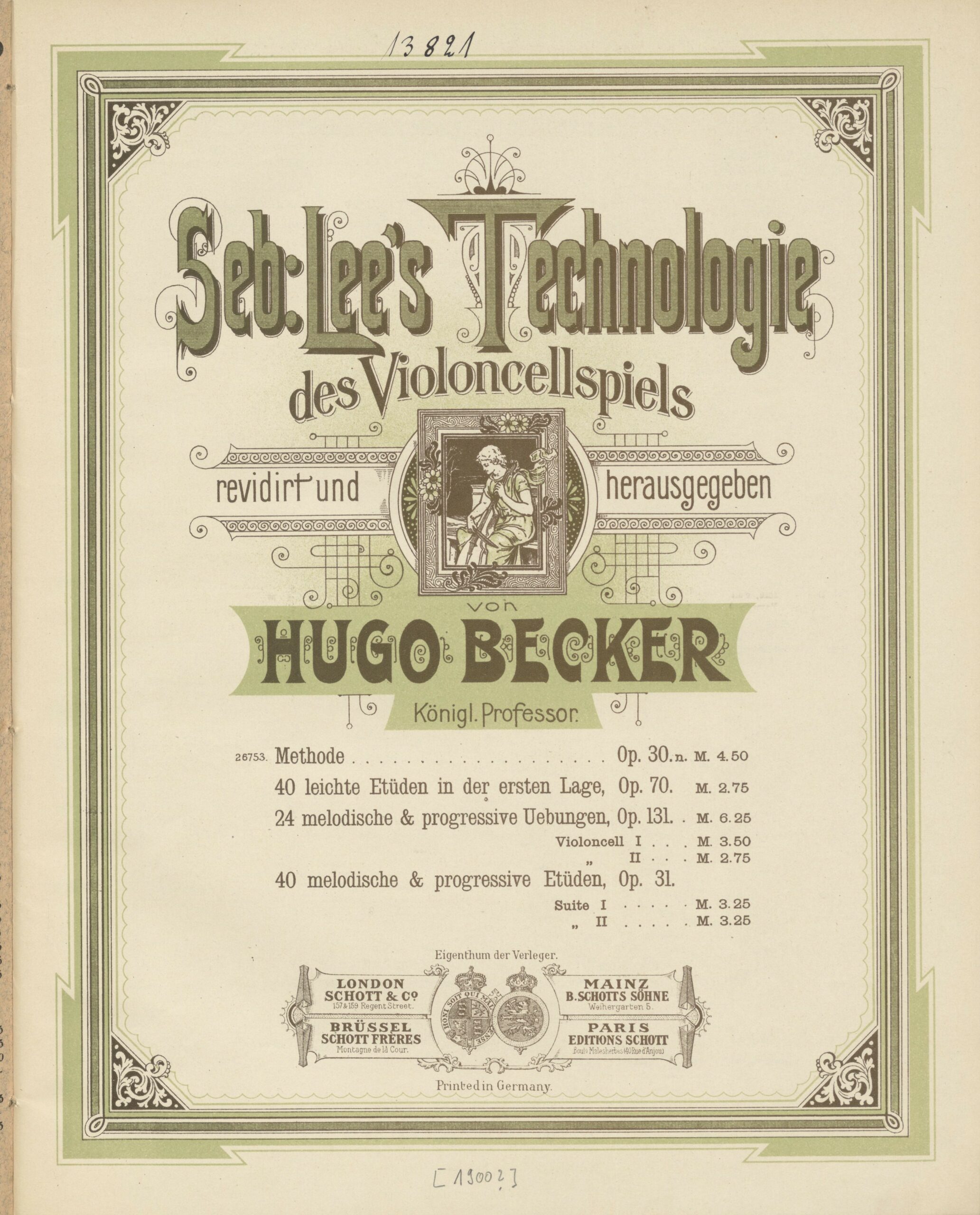 Später wurde die Ausgabe von Schott in Mainz übernommen, wo der berühmte Cellopädagoge Hugo Becker (1864–1941) die Etüden op. 31 zu Beginn des 20. Jahrhunderts im Rahmen einer Sammlung von Lee-Werken für eine Neuausgabe revidierte. Auf dieser Grundlage erschienen in den letzten 100 Jahren bei zahlreichen Verlagen weitere Ausgaben, die durch verschiedene Cellisten mehr oder weniger für den aktuellen Gebrauch „eingerichtet“ waren. All diese späteren Ausgaben unterschieden sich signifikant von der Erstausgabe, indem hier immerhin 10 der 40 Stücke um ganze Abschnitte von 8 oder 12 Takten gekürzt waren. Für uns als Urtext-Verlag schien die Sache klar: Die Erstausgabe von 1843 wäre Hauptquelle einer Edition, die den ursprünglich vom Komponisten fixierten Text des Werkes präsentierte, frei von den Kürzungen und Änderungen später Herausgeber wie Hugo Becker – oder etwa nicht?