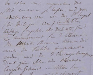 Ausschnitt aus Liszts Angebot zum Verlag des 2. Klavierkonzerts an B. Schott’s Söhne (Brief vom 22. Januar 1859, Staatsbibliothek zu Berlin): „Es wäre mir angenehm das Stük [= 2. Klavierkonzert] erscheinen zu laßen, und zwar in nähmlicher Weise wie das 1te Conzert …“