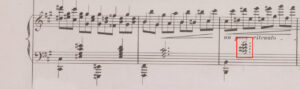 In der Partitur haben wir auf Zählzeit 2 den Akkord h/dis1/fis1/a1, was harmonisch korrekt ist, da auch im Orchester der Septakkord von H-dur erklingt. Im Klavierauszug ist dagegen gis/h/dis1/fis1 gedruckt; keine Frage, gis passt nicht zur Harmonik – einfach nur ein Stichfehler? Noch merkwürdiger erscheint die Stelle, wenn man die Quellen davor untersucht.